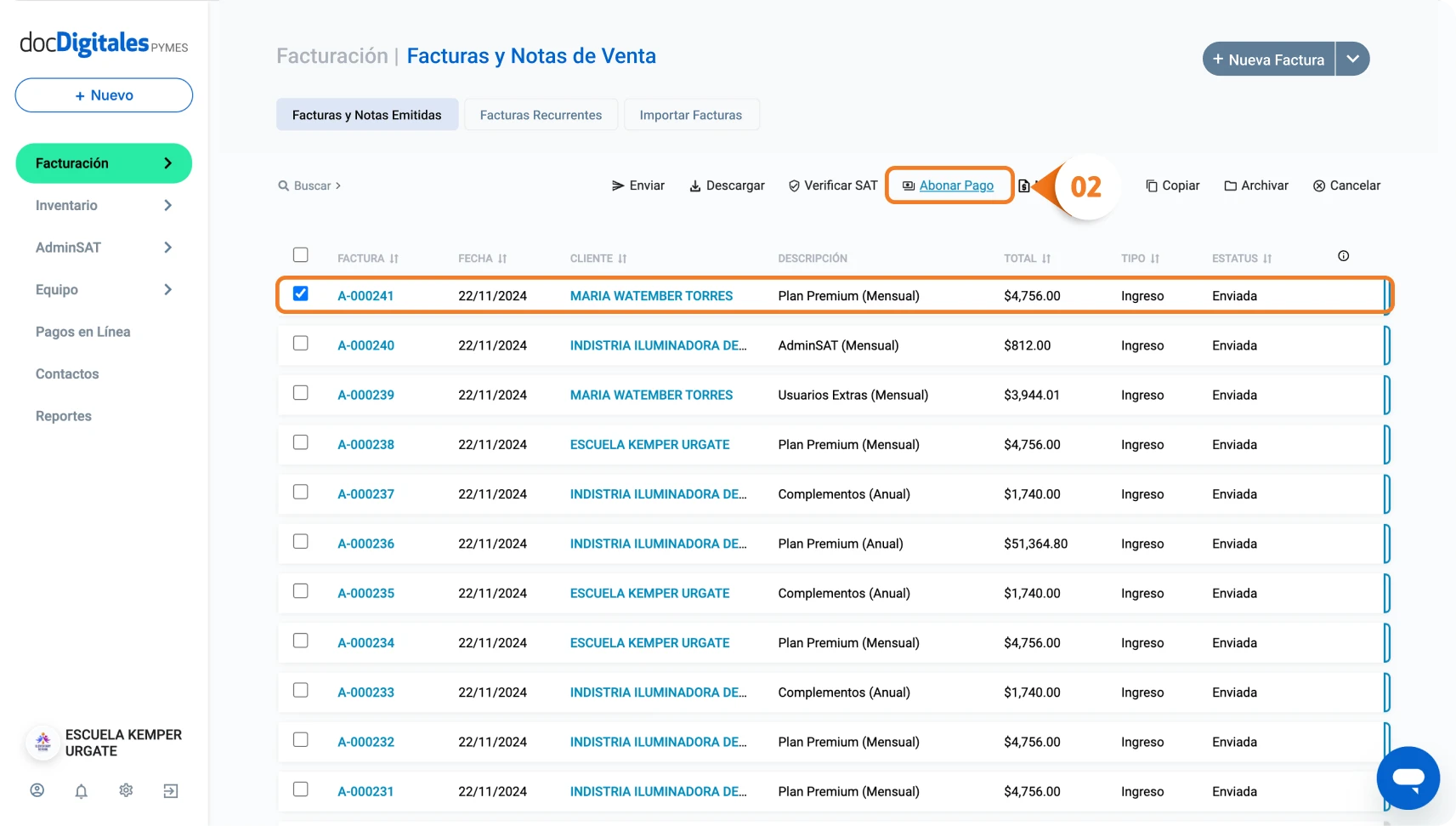 En docDigitales, puedes generar el complemento de dos maneras: Para una factura en específico o para varias facturas en un solo comprobante.